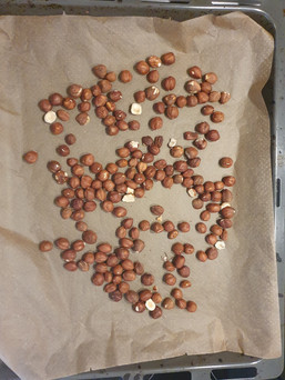 Put the hazelnuts on a baking tray and roast them for 10 to 12 minutes.