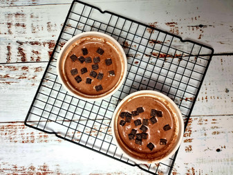 Gib 200ml Pflanzenmilch, 1 Msp. Vanille, 1 Prise Salz, 2 TL Nussmus, 2 TL Kakao, 1 TL Backpulver und 1 - 2 EL Dattelsirup zusammen mit 120g Haferflocken in einen Mixer und püriere alles zu einer cremigen Masse
